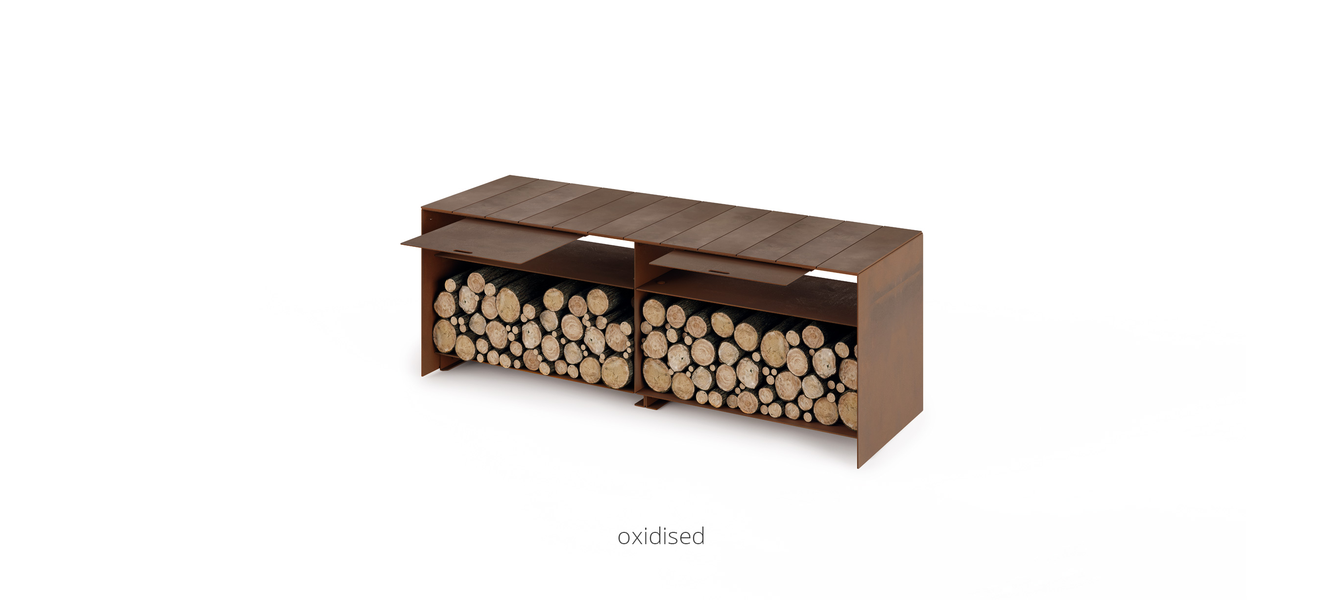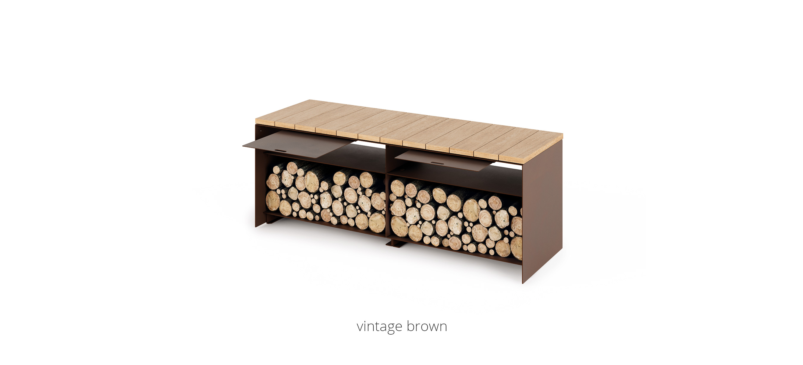 Non solo braciere ma anche contenitore per la legna, se non in funzione può diventare anche un’utile base di appoggio.