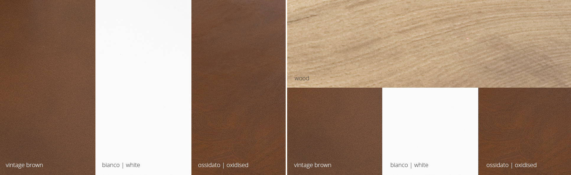 Finitura: Vintage brown, Bianco, Acciaio ossidato.