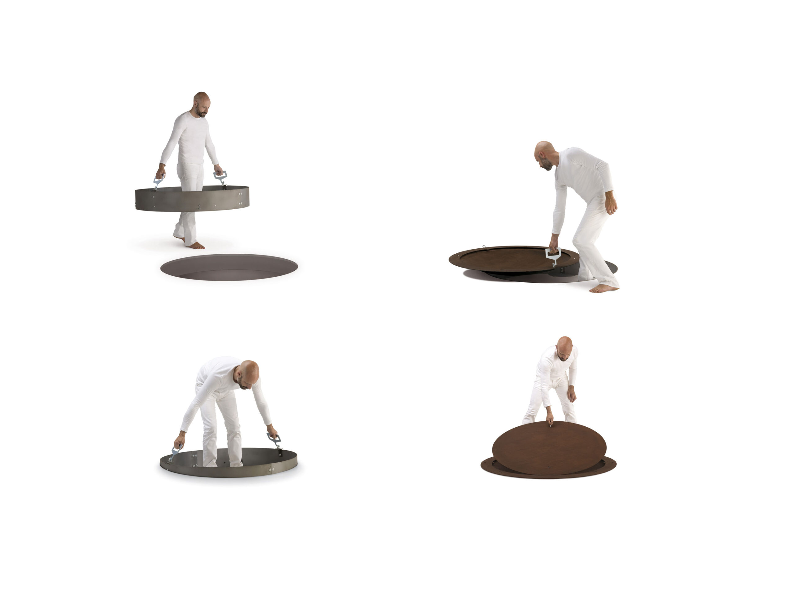 Hole is an in-ground, recessed wood-burning outdoor fire pit.