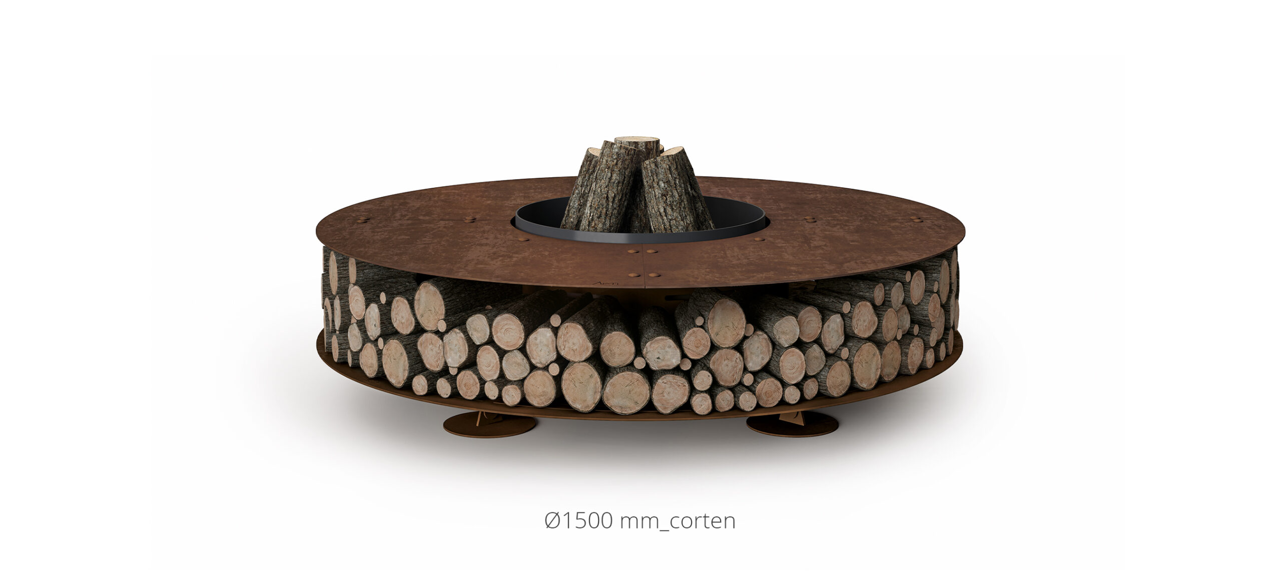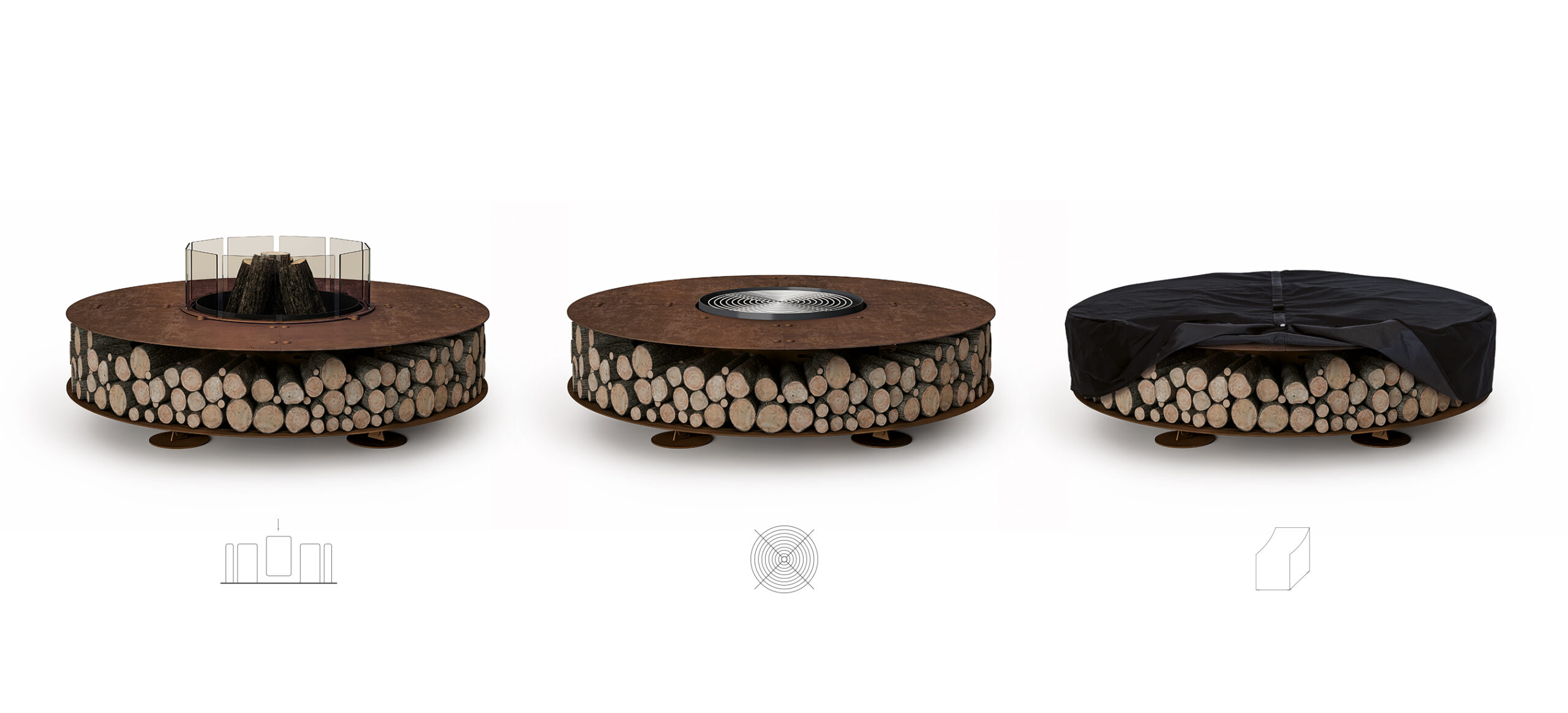 Not only a fire pit, but also a wood storage: if not operating, it can become a useful supporting surface.