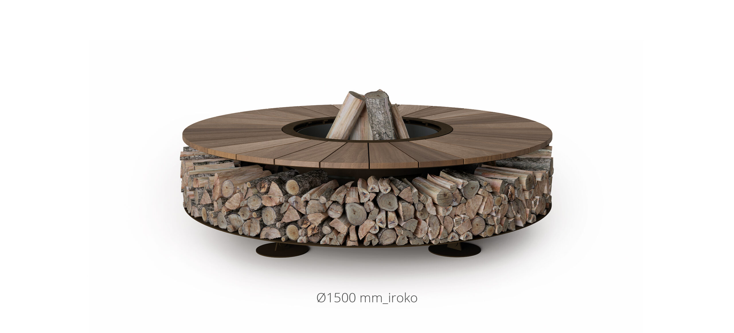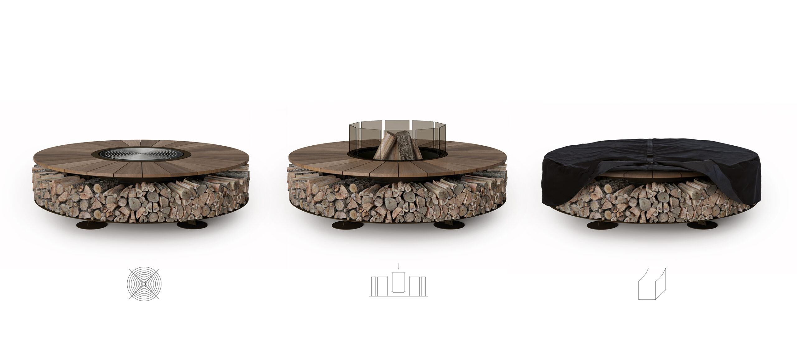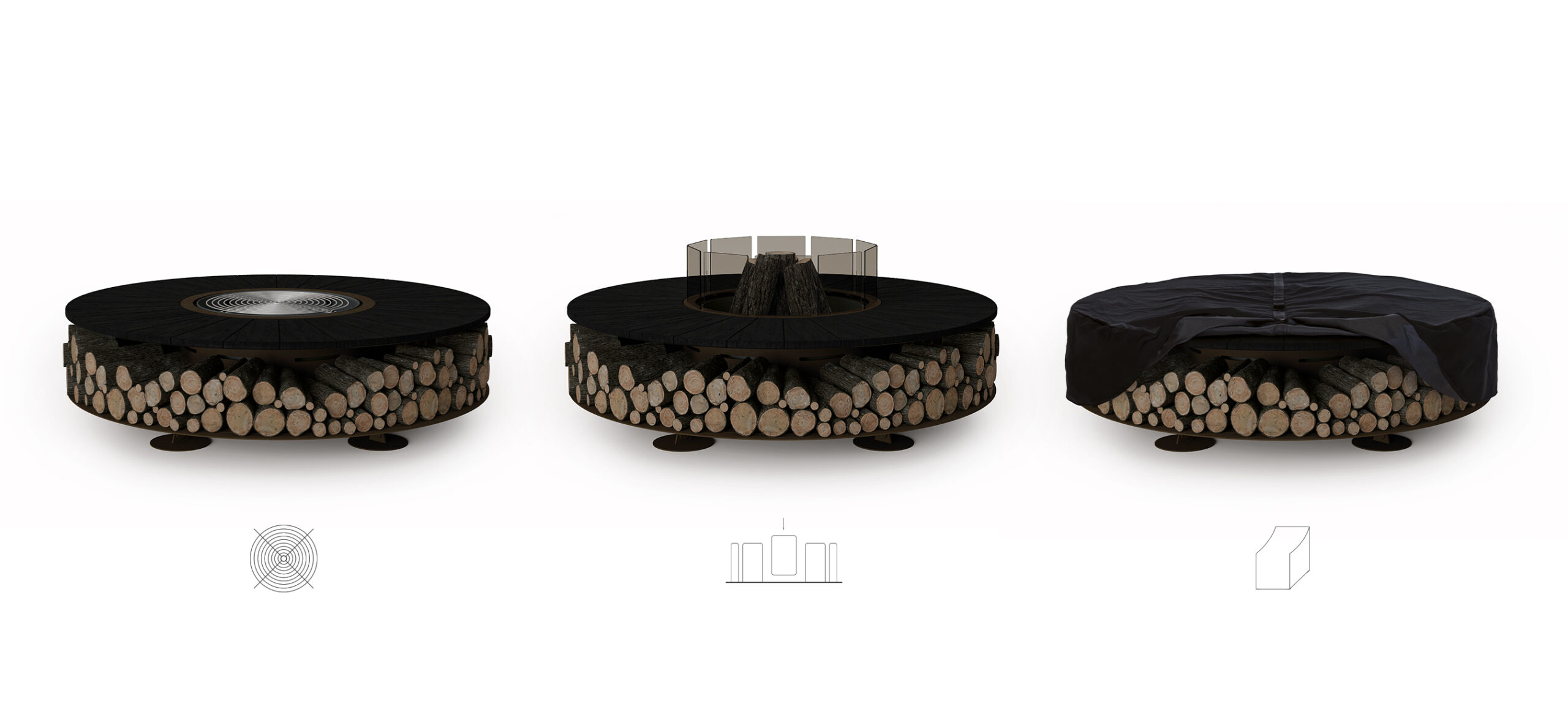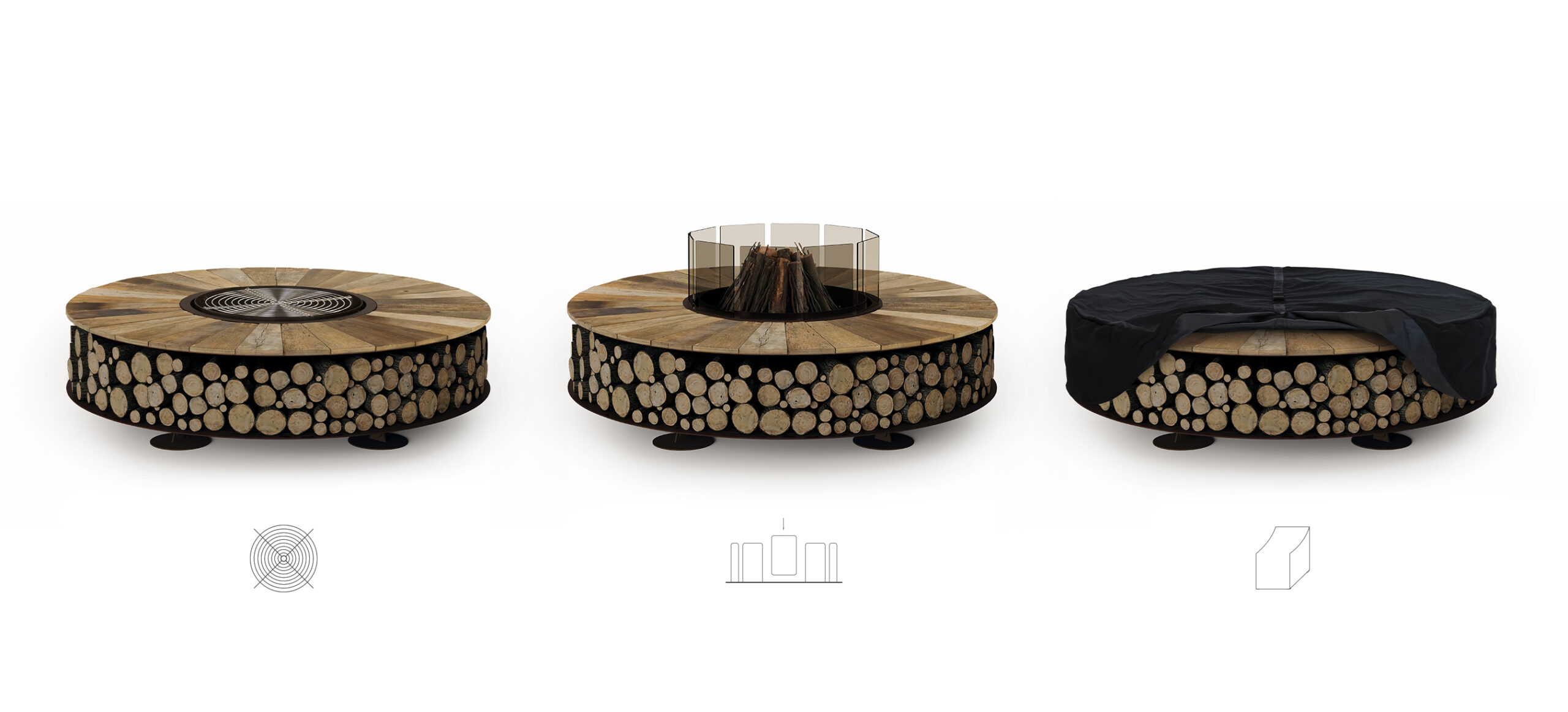 Not only a fire pit, but also a wood storage: if not operating, it can become a useful supporting surface.