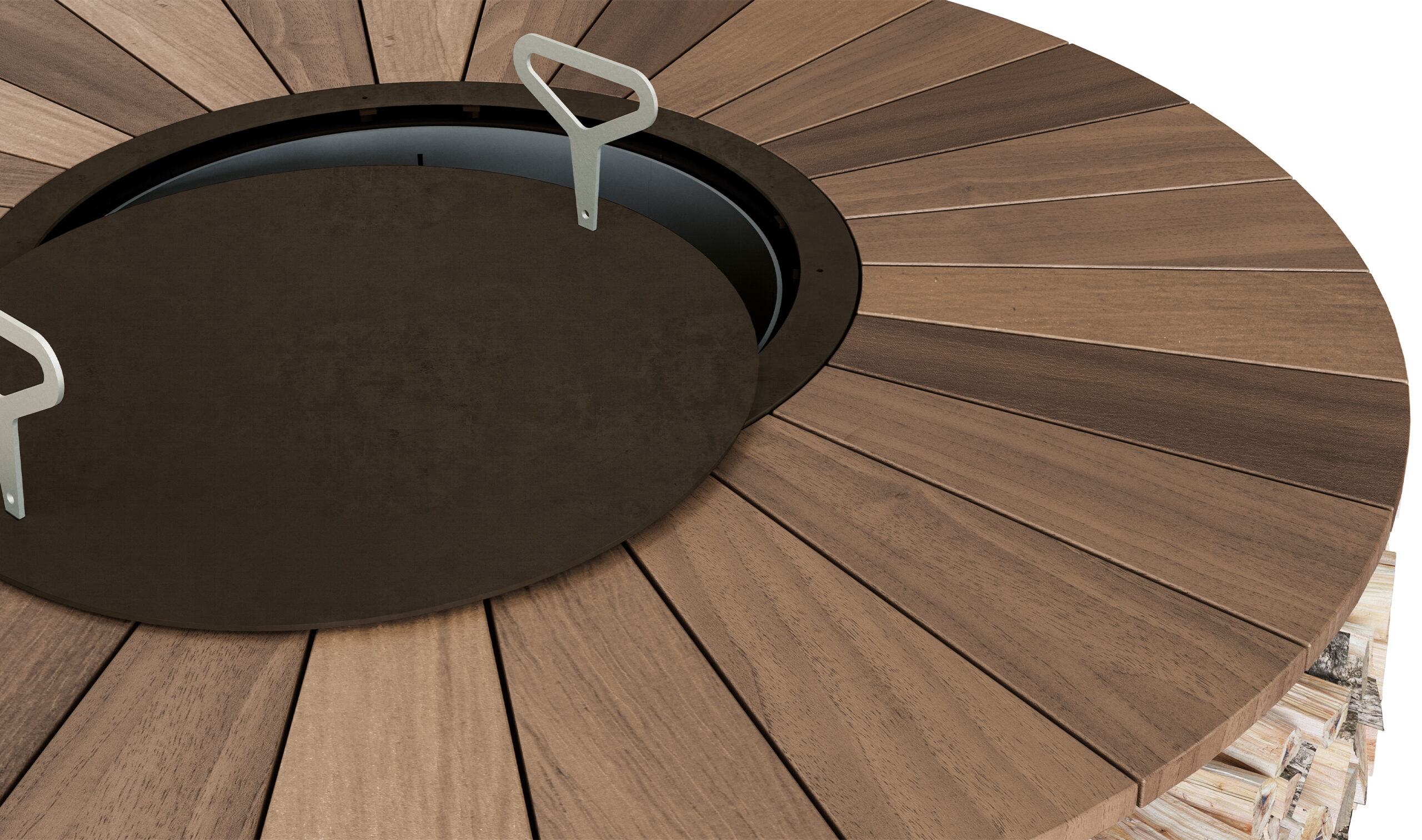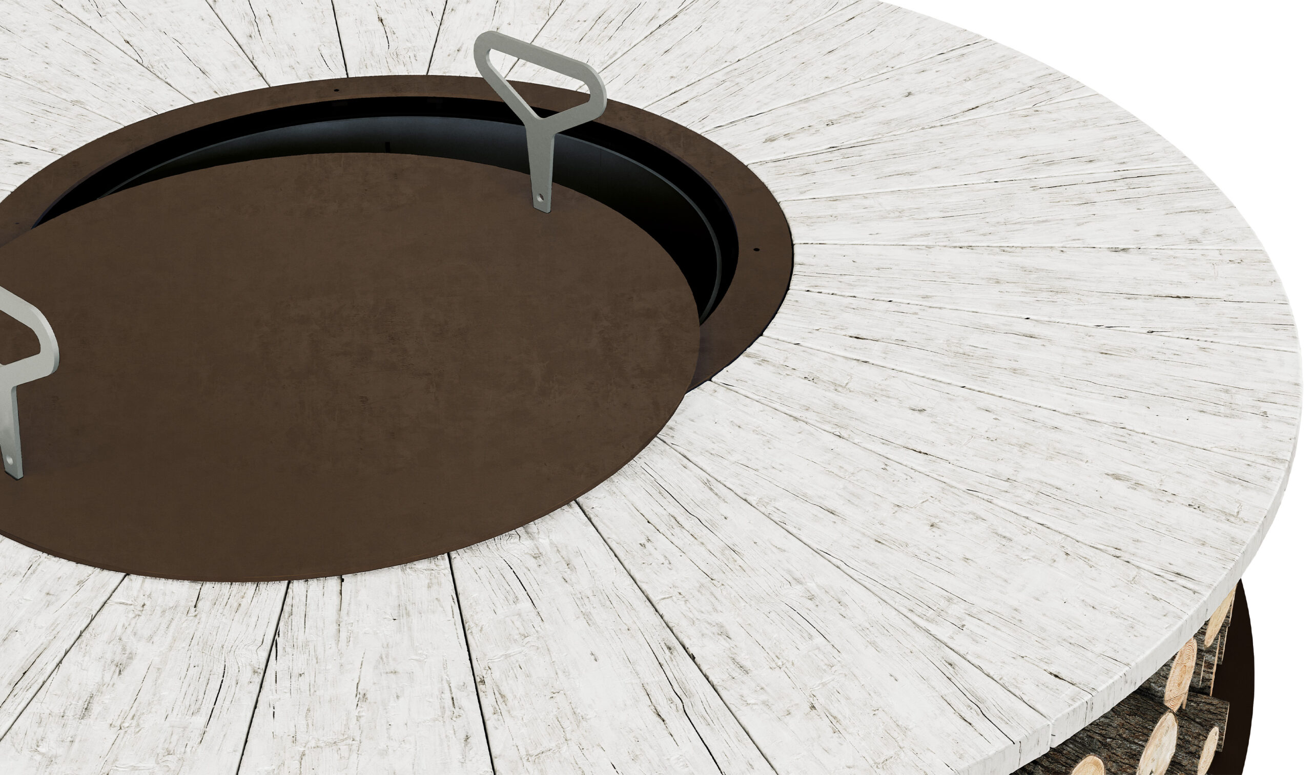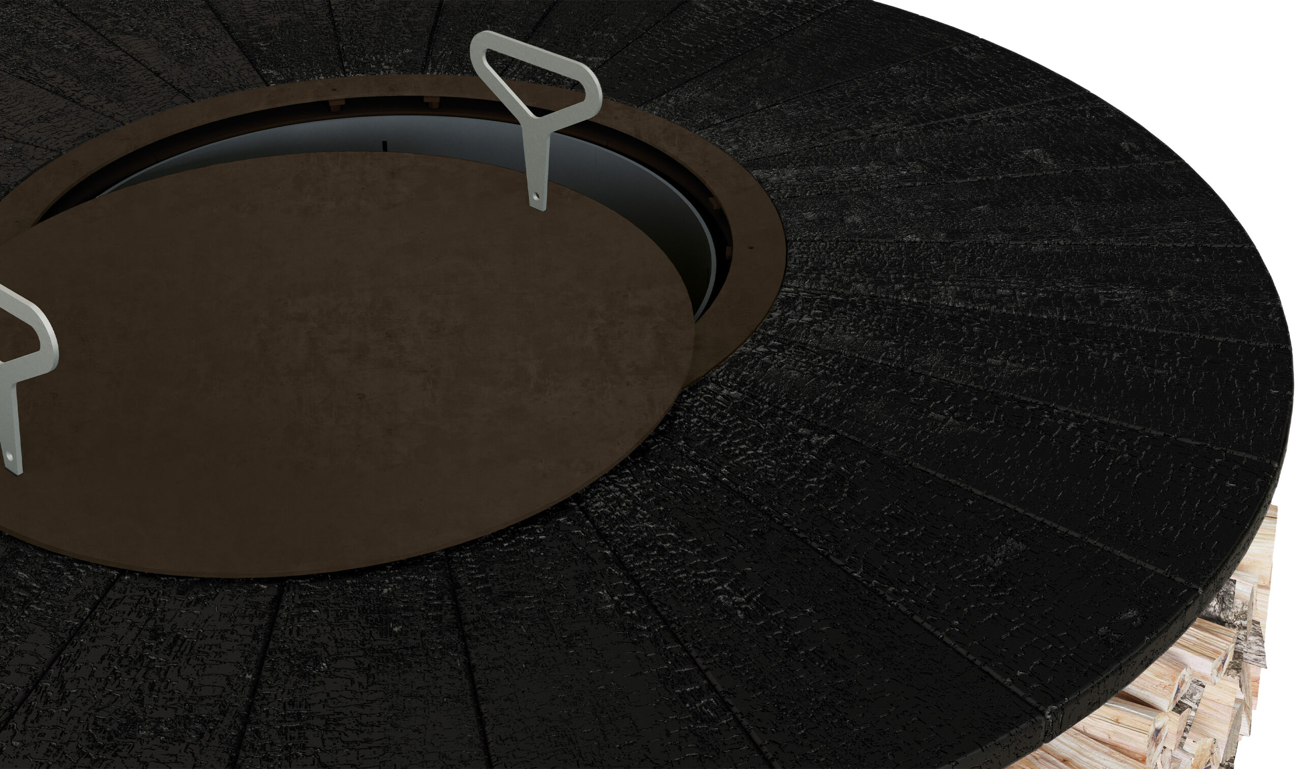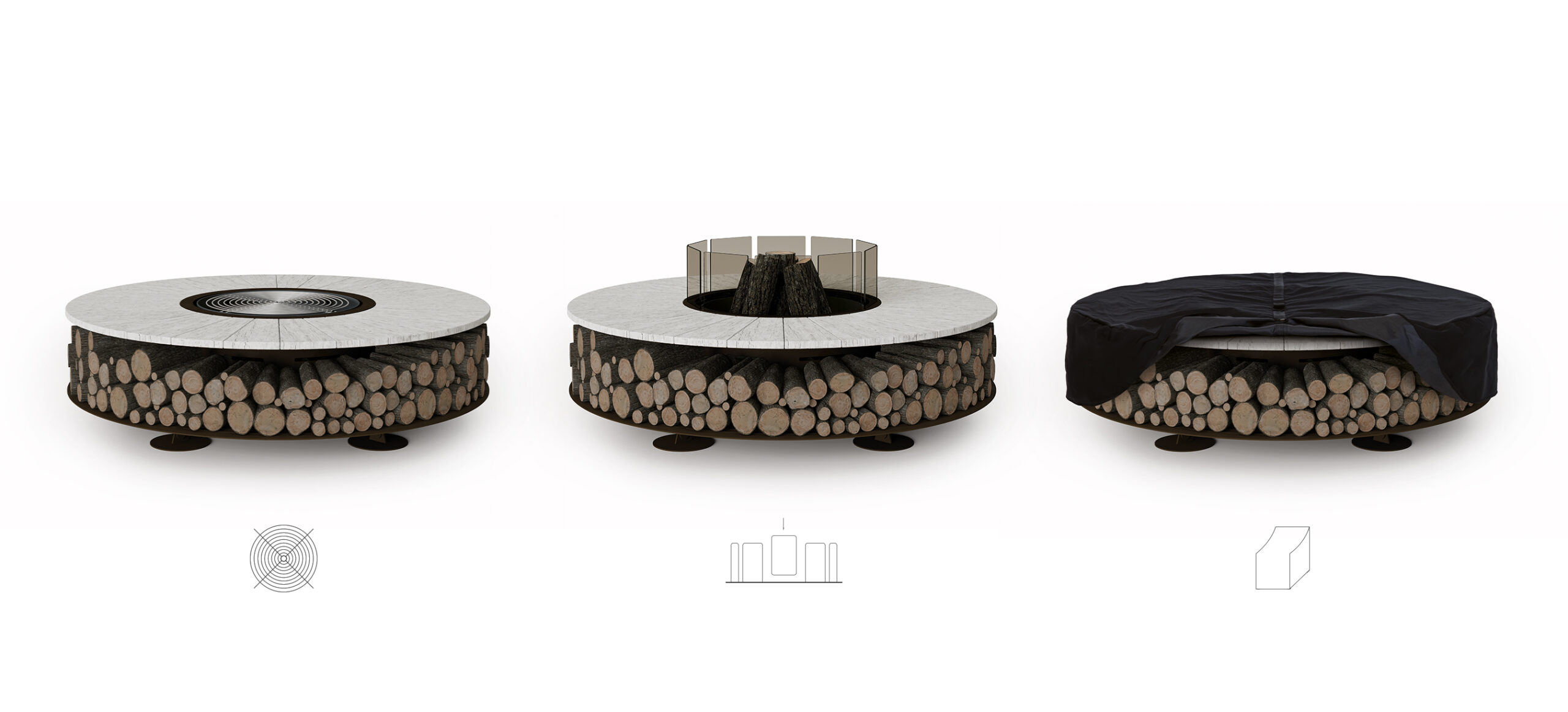 Not only a fire pit, but also a wood storage: if not operating, it can become a useful supporting surface.