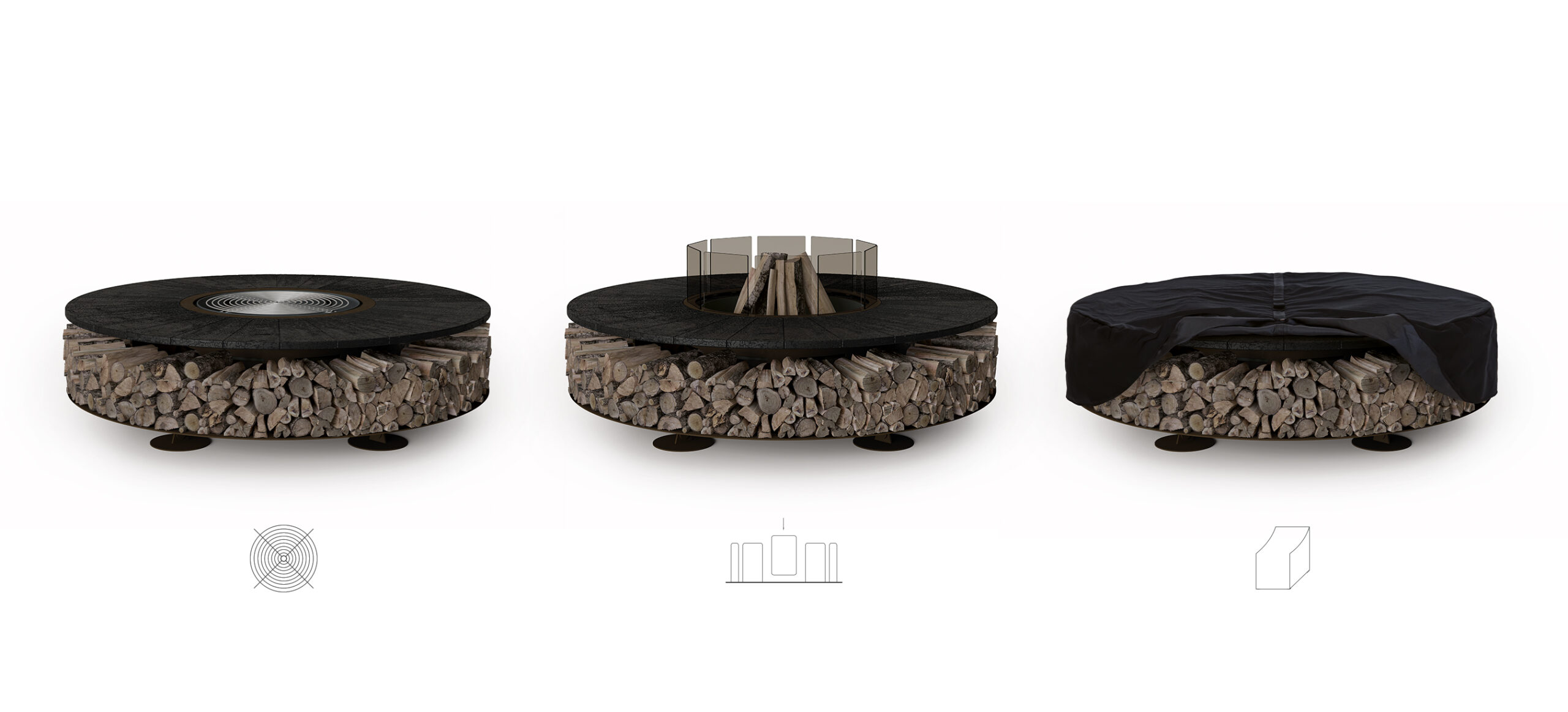 With the dedicated stainless steel grill kit (sold separately), the fire pit can also be used as a barbecue.